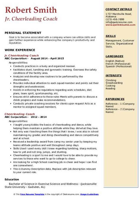 Download PDF Online cheer coach resume sample Kobo PDF